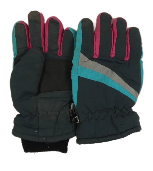 Tmavošedo-růžovo-tyrkysové šusťákové zimní prstové rukavice Yiggaq