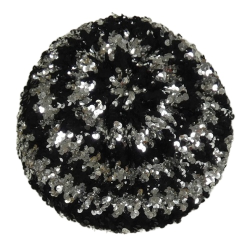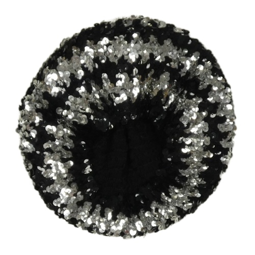 Černo-stříbrný pletený flitrový baret