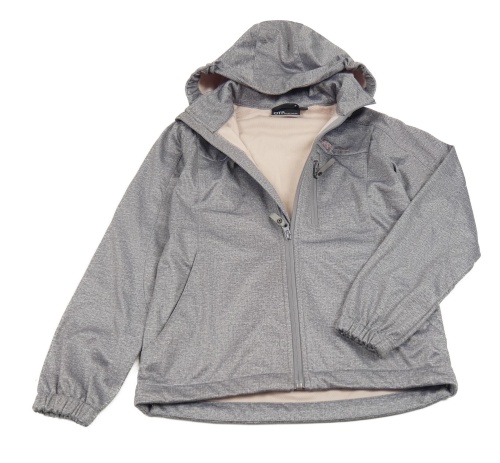 Šedo-světlerůžová melírovaná softshellová bunda s kapucí