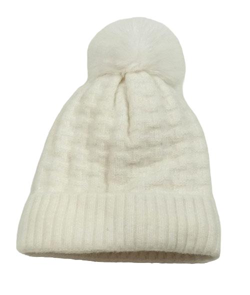 Bílá pletená čepice s bambulí