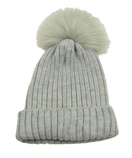 Světlešedá melírovaná žebrovaná pletená čepice s bambulí