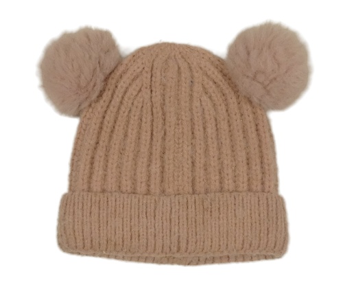 Starorůžová pletená žebrovaná čepice s bambulí Primark