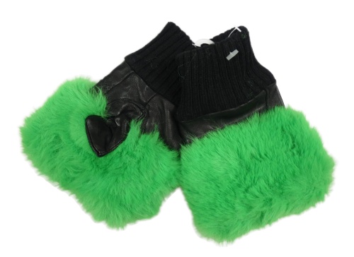 Černo-zelené koženkovo/kožešinové rukavice bez prstů