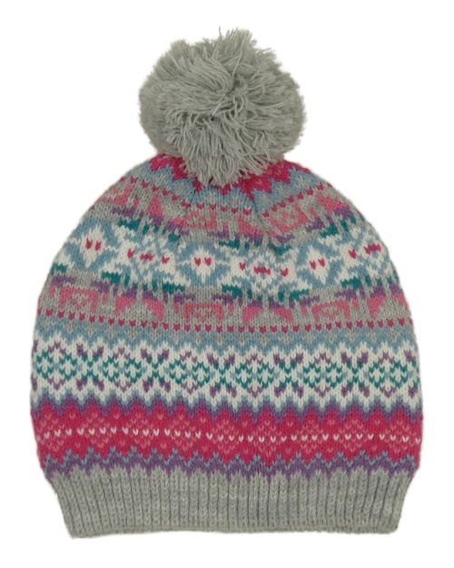 Šedo-barevná vzorovaná pletená čepice s bambulí