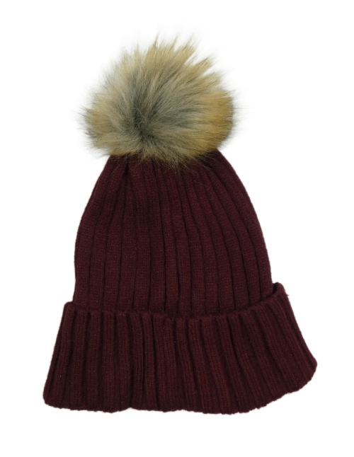 Mahagonová žebrovaná čepice s bambulí PRIMARK