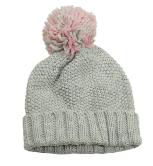 Šedá čepice s růžovo-šedou bambulí