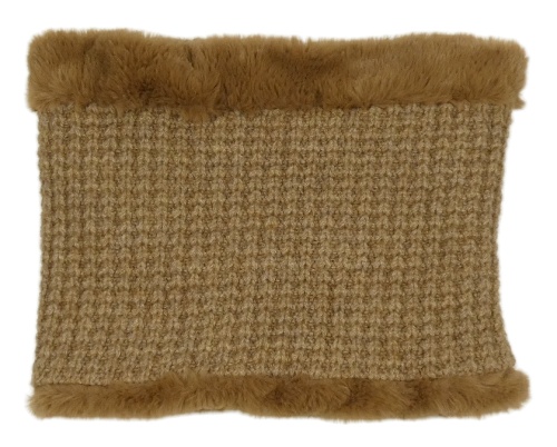 Hnědý pletený nákrčník s kožešinou