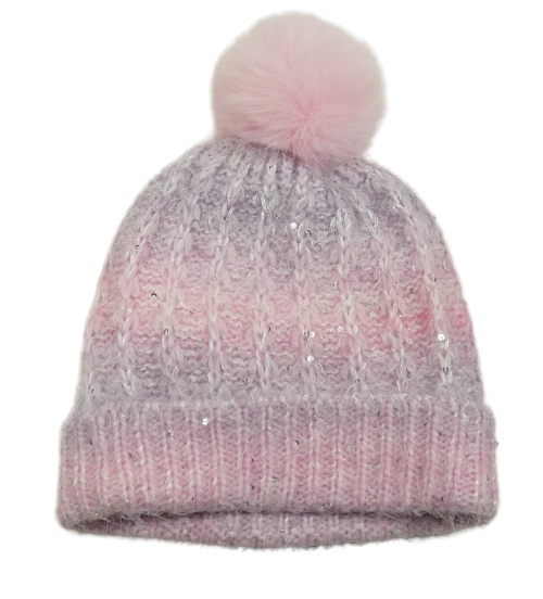 Fialovo-růžová čepice s flitry a bambulí vel.140-158