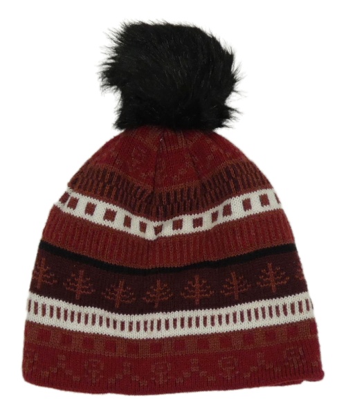 Vínovo-hnědá vzorovaná čepice s bambulí