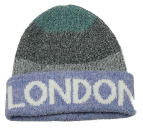 Tmavošedo-šedo-fialovo-modrozelená melírovaná vlněná čepice s nápisem
