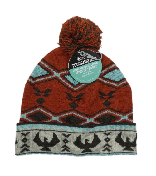 Nové - Rezavo-barevná vzorovaná pletená čepice s bambulí