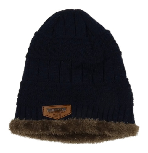 Tmavomodrá pletená zateplená čepice s nášivkou