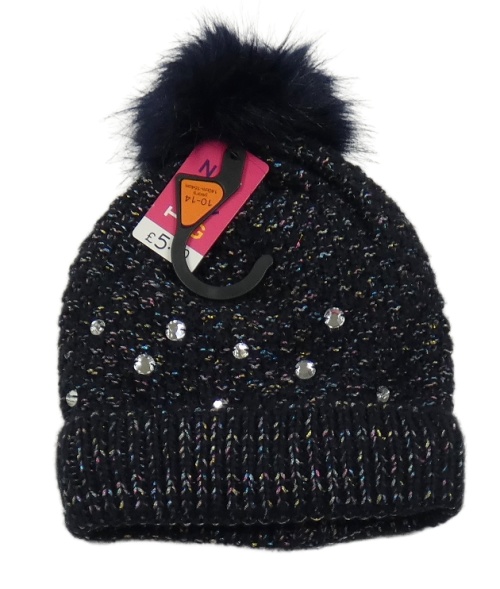 Nové - Tmavomodrá třpytivá čepice s kamínky a bambulí Nutmeg