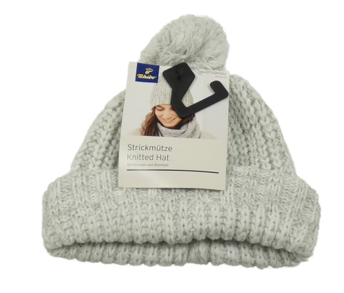 Nové - šedo-bílá melírovaná pletená čepice s bambulí TCM