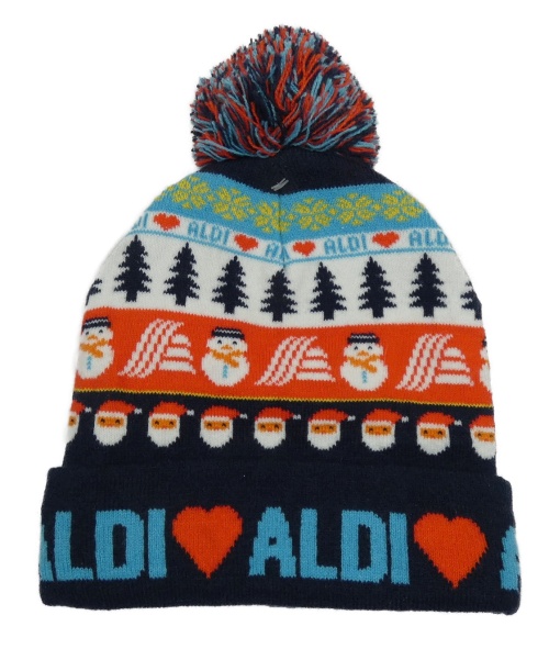 Barevná pruhovaná pletená čepice s vánočním motivem