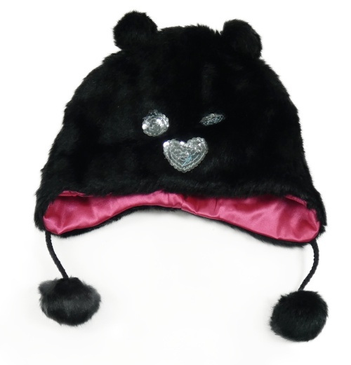 Černá kožešinová čepice s čumákem a bamulemi