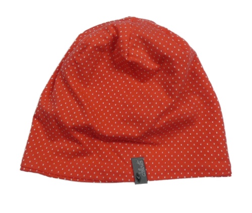 Růžová puntíkatá bavlněná čepice s nášivkou