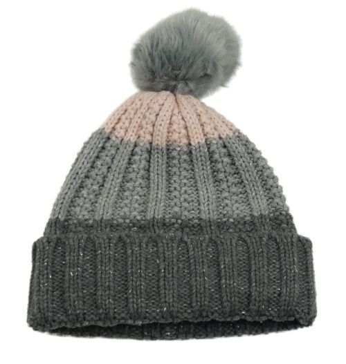 Šedo-růžová čepice s bambulí Tchibo
