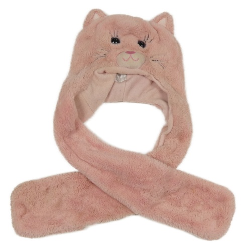 Světlerůžová kožešinová čepice se šálou - kočka
