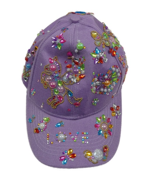 Fialová kšiltovka s kamínky