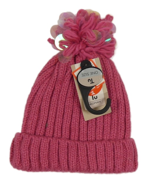 Nové - růžová pletená žebrovaná čepice s bambulí Tu