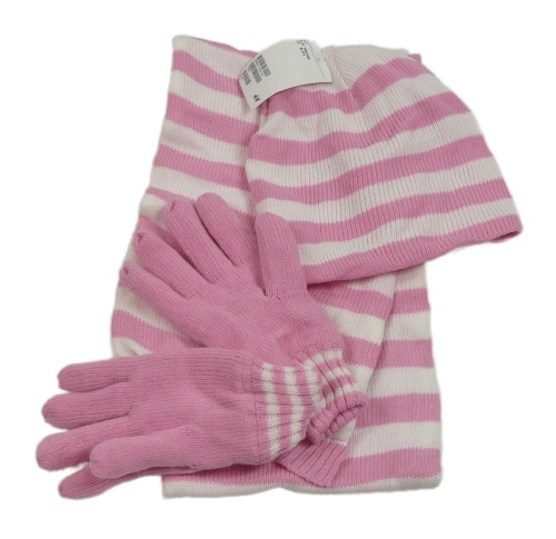 Nové - 3set - Růžovo-bílá pruhovaná šála + čepice + prstové rukavice