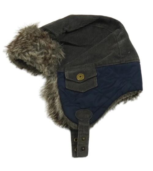 Šedo-tmavomodrá manšestrovo-šusťáková zateplená beranice