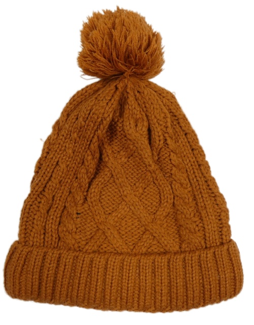 Hnědá vzorovaná pletená čepice s bambulí