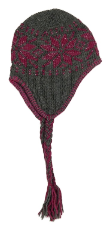 Šedo-růžová pletená ušanka se vzorem New Look