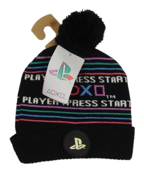 Nové - černo-barevná pruhovaná pletená čepice s bambulí - PlayStation Primark