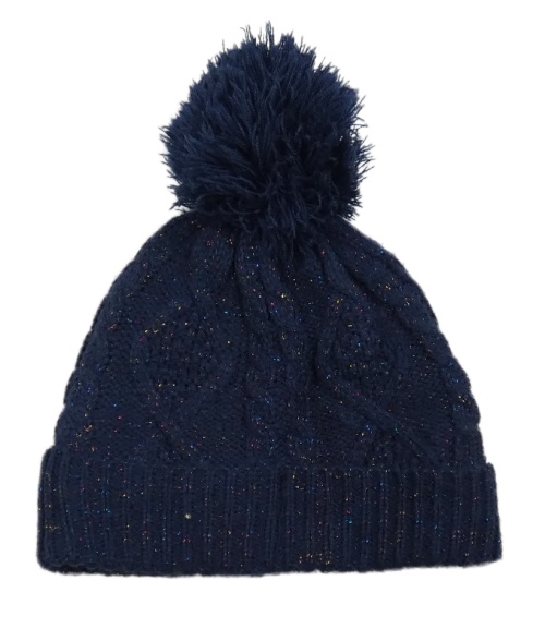 Tmavomodrá pletená třpytivá podšitá čepice s bambulí F&F