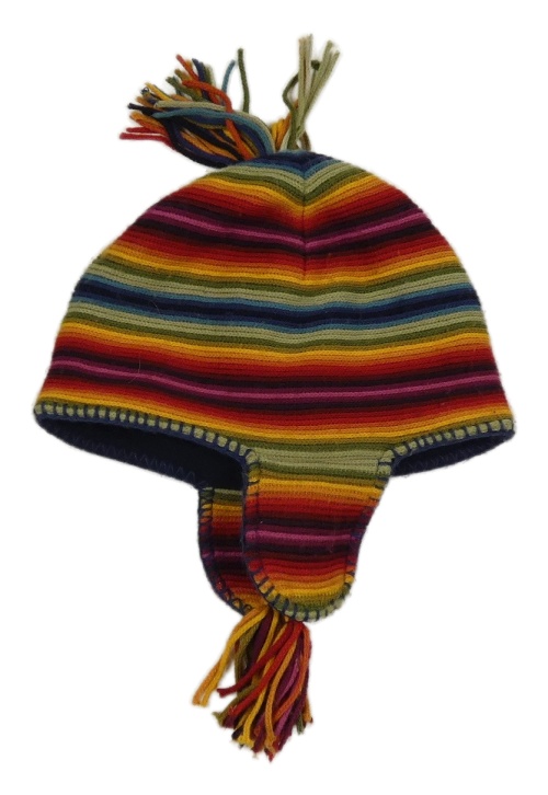 Barevně pruhovaná čepice s třásněmi