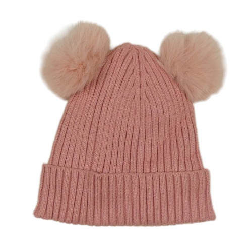 Starorůžová žebrovaná pletená čepice s bambulemi Topolino