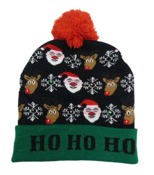 Nové - Černo-zelená pletená čepice se Santy a soby