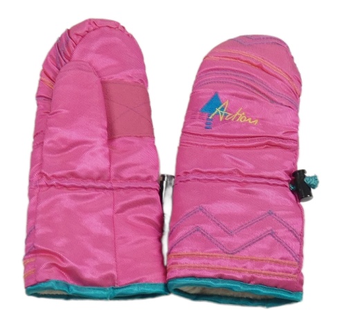 Růžové šusťákové zimní palcové rukavice s výšivkou