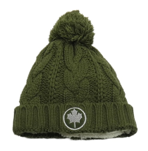Khaki pletená zateplená čepice s bambulí