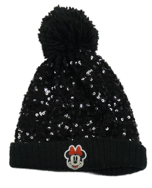 Černá tylovo/pletená čepice s Minnie a flitry a bambulí Disney
