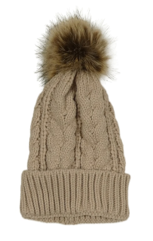 Béžová pletená čepice s bambulí