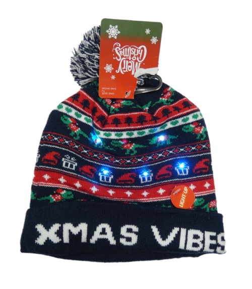 Nové - Tmavomodro-barevné vzorovaná pletená čepice s vánočním motivem