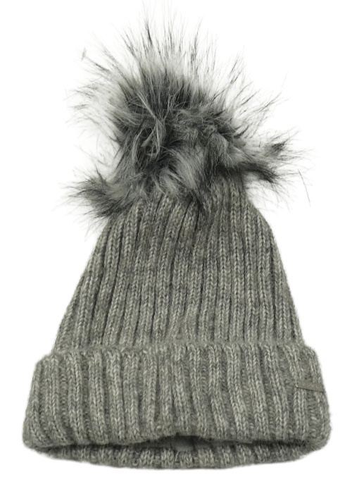 Šedá melírovaná žebrovaná pletená čepice s bambulí