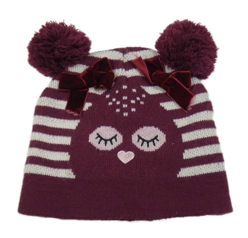 Vínovo-bílá pruhovaná pletená čepice se sovou X-mail