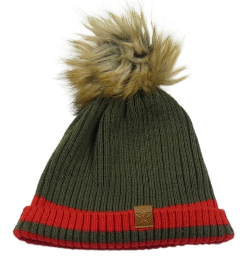 Khaki-červená čepice s bambulí Primark