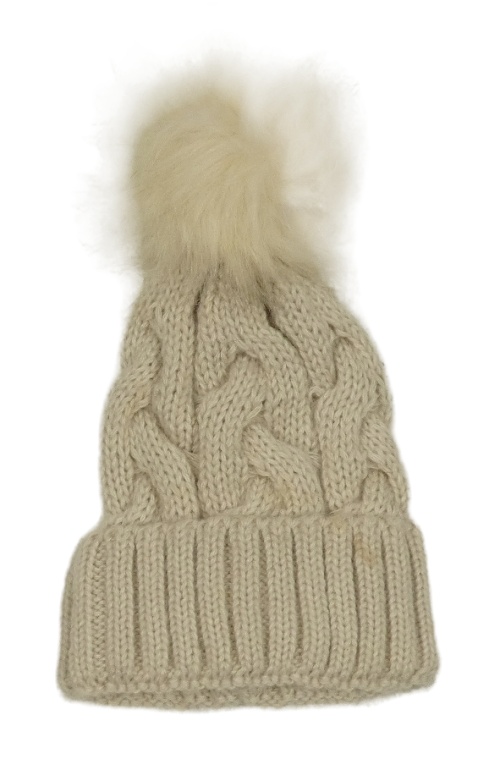Béžová pletená čepice s bambulí New Look
