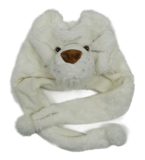 Smetanová kožešinová čepice se šálou - tygr
