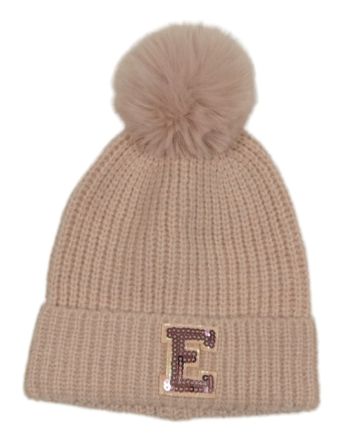 Růžová pletená čepice s písmenem s flitry a bamulí
