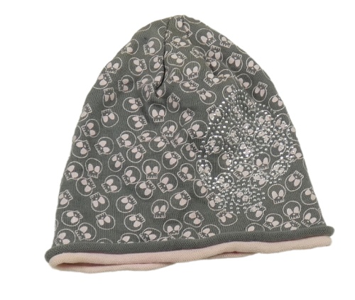 Šedo-růžová úpletová čepice s lebkami