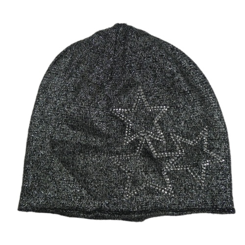 Černo-stříbrná třpytivá čepice s hvězdami bpc
