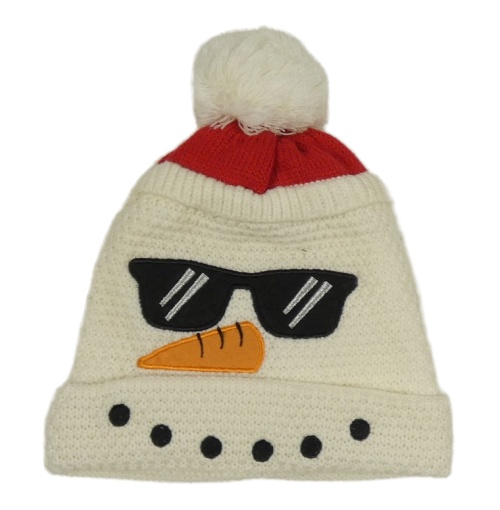 Smetanovo-červená pletená čepice s bambulí - sněhulák Matalan