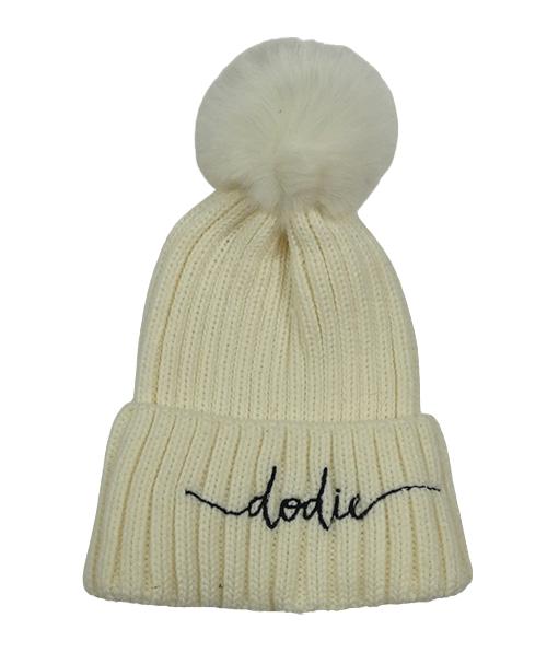 Smetanová pletená čepice s nápisem a bambulí Beechfield