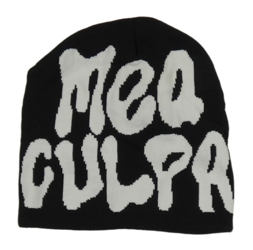 Černá pletená čepice s nápisem